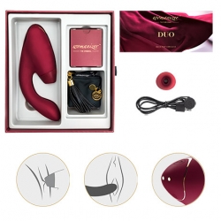El nuevo Womanizer duo Bordeaux es Succionador y Vibrador en uno. Es sin duda el Ferrari de los succionadores de clítoris, además es ideal para aquellas mujeres que además de succión precisan penetración.