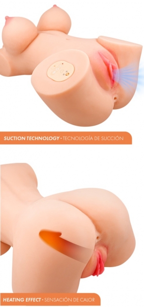Este torso masturbador está equipado con potentes modos de vibración y tecnología de succión, que recrean una estimulación rítmica e intensa, adaptándose a cada preferencia. Sus funciones pueden combinarse para disfrutar de diferentes niveles de placer, desde una estimulación suave hasta una experiencia más profunda y envolvente.
