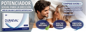 1. Es un potenciador afrodisiaco 100% natural, está compuesto por 13 ingredientes naturales utilizados desde hace siglos en la medicina alternativa para tratar la disfunción eréctil. Algunos de los extractos vegetales que contiene Duraeval para ayudar a la erección son : Extracto seco de alholva, extracto seco de canela, extracto seco de ginseng, extracto seco de maca, extracto seco de rosa, extracto seco de tribulus, extracto seco de pimienta negra, extracto seco de guaraná y extracto seco de trigo.