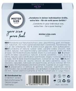 Además de la responsabilidad y el cuidado durante el sexo, los hombres con un pene pesado también necesitan naturalmente el condón adecuado, que puede ser difícil de encontrar, hasta ahora. Afortunadamente, MISTER SIZE 69 es como un traje a medida personal. Se ajusta perfectamente a tu mejor parte como una segunda piel y te permite experimentar momentos de intensidad y placer. Sin efectos secundarios molestos, solo pura sensación.