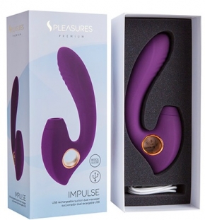 Descubre el succionador Impulse, el juguete erótico diseñado para quienes no quieren elegir entre vibración interna y succión externa. Gracias a su diseño ergonómico en forma de "C", este vibrador de doble estimulación se adapta a tu cuerpo para masajear el Punto G mientras su boquilla succionadora acaricia el clítoris.
