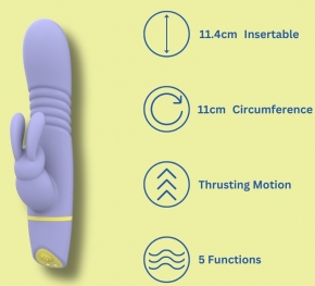El Vibrador Rabbit Mina Tide con movimiento de empuje, disponible en PuntLove, está diseñado para quienes quieren disfrutar del placer doble típico de los conejitos (clítoris + punto G) con un extra de intensidad gracias a su eje de empuje. Es un juguete ideal si buscas un vibrador para principiantes pero con sensaciones más completas que un simple vibrador clásico.